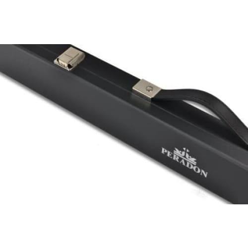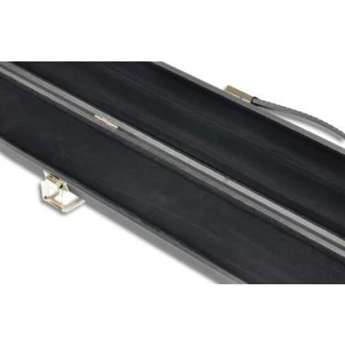 This black attache style case features a black flocked foam interior to hold the cue securely in place.